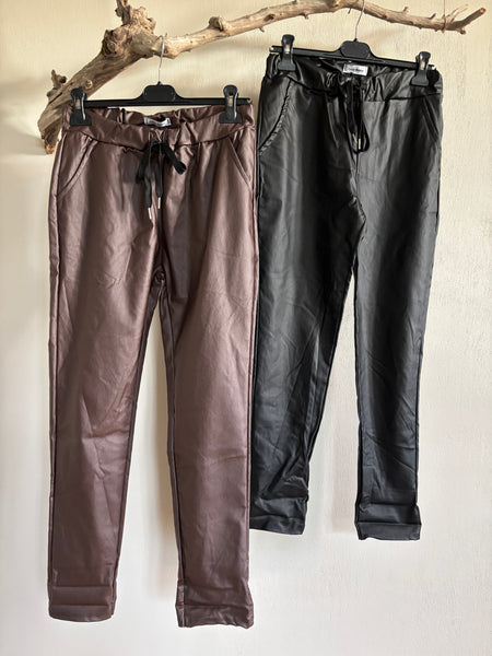 - Sköna vaxade byxor med knyt i midjan & snön stretch