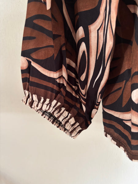 - Resår i ärmsluten, liten volang uppe på kragen