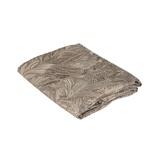 Duk "Farah", i fint bladmönster som breder ut sig över tyget som en levande målning, med stora, svepande former och djup i varje detalj. Färgtonerna är jordnära men samtidigt uttrycksfulla. Mörkbeige bottenfärg