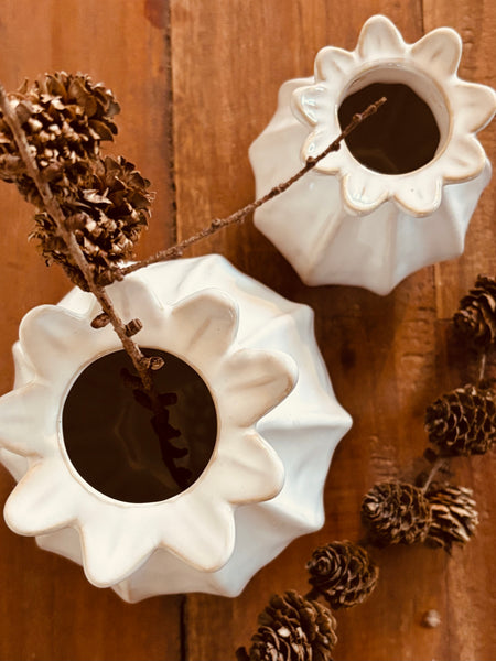 - Fina vita keramikvaser i en naturlig form, i två storlekar
