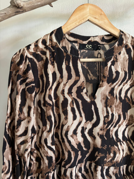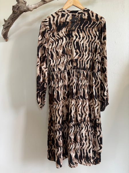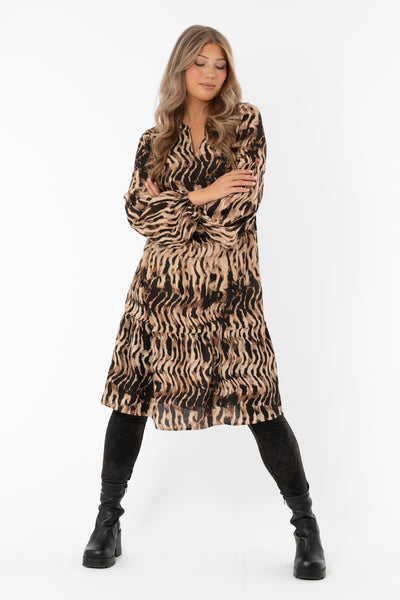 • ”Capucine” klänning i trendigt djurmönster, med resår i ärmsluten