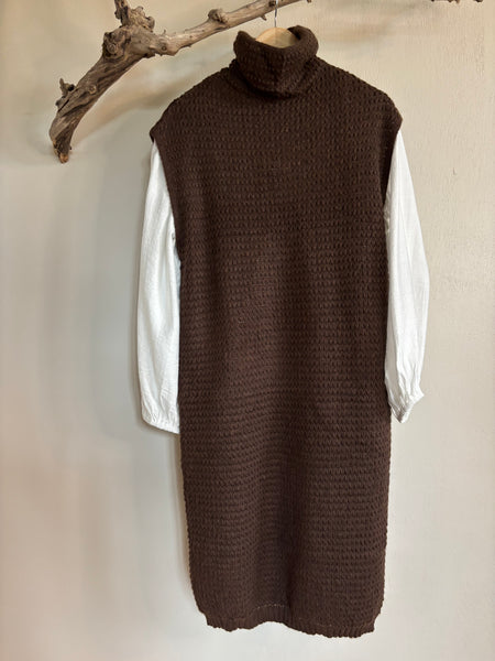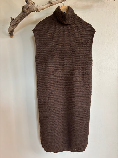 - ”Evy” brun stickad ärmlös klänning med polokrage