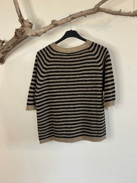 - "Dell" Tunn stickad randig tröja med halvlång ärm