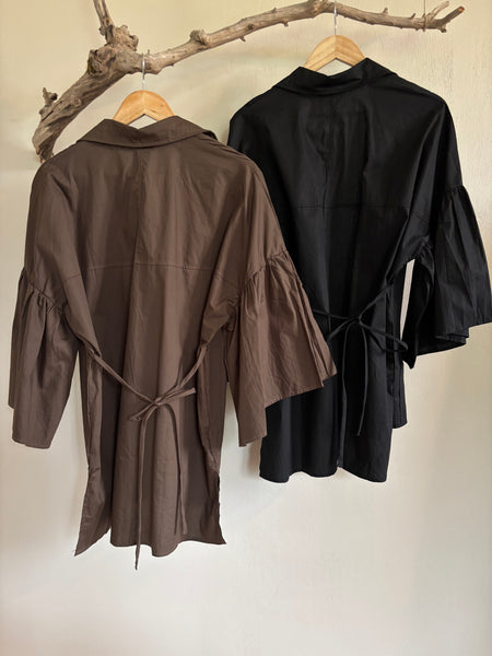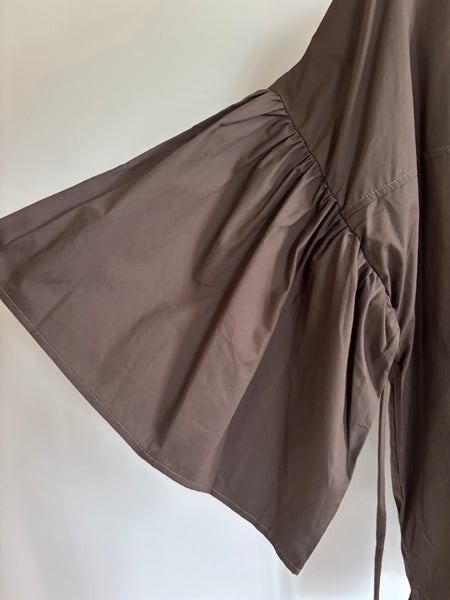 - ”Thea” skjorta med 3/4-dels långa trumpetärmar. Lite längre modell med knytband i ryggen (lätta att ta bort om man vill)