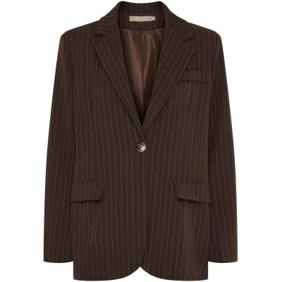 - "Damiana" kritstrecksrandig brun kavaj i klassisk modell med en knapp