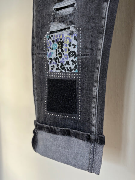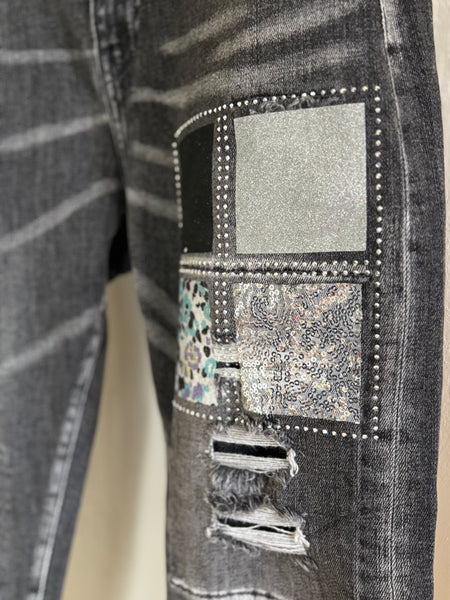Coola gråa stretchiga jeans med lappar & lite bling.