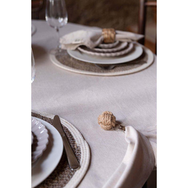 "Vide" duk med linnelook, är tillverkad av återvunnen bomull och återvunnen polyesterDen passar perfekt för både vardagliga och festliga tillfällen och är ett utmärkt val för dig som värdesätter både stil och miljömedvetenhet.